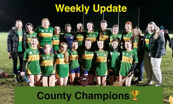 Pride of place in this week's update goes to our u15 camogie team who won the u15 B county final this evening against Annacarthy 2.10 to 1.4. Well done to all the girls and mentors-what a way to finish out the year!
