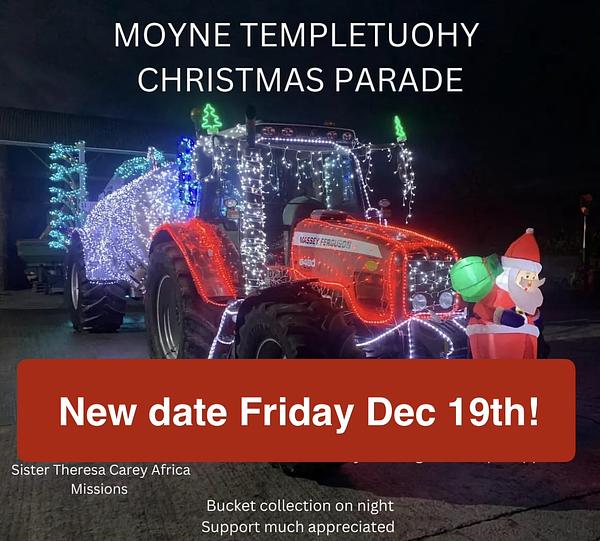 Due to the untimely passing of our friend and cameraman Billy Loughnane, we have decided as a mark of respect to postpone our Christmas tractor parade until Friday 19th December.