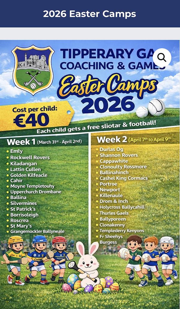 Tipperary GAA Easter Camp Reminder