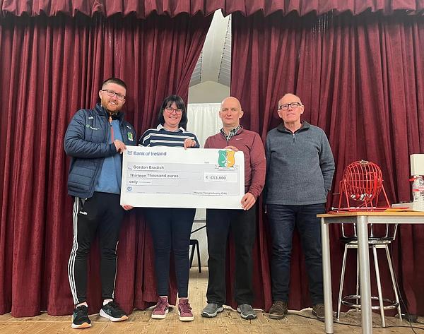 The winning cheque was presented to his wife Mary at Bingo tonight.